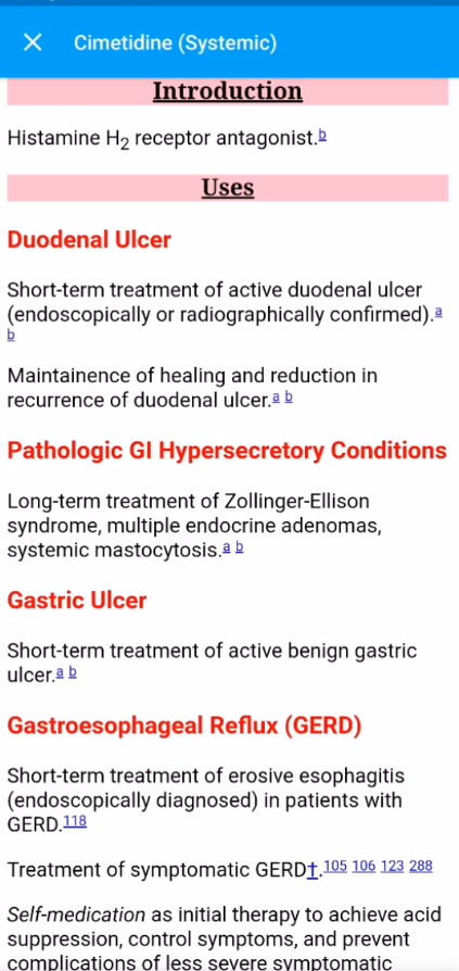 - Drug warnings contraindications. For example, type "cimetidine" and press send.