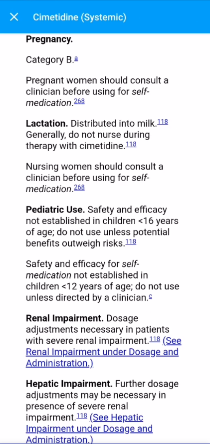 - For example: "cimetidine in pregnancy" or "contraindications to cimetidine"