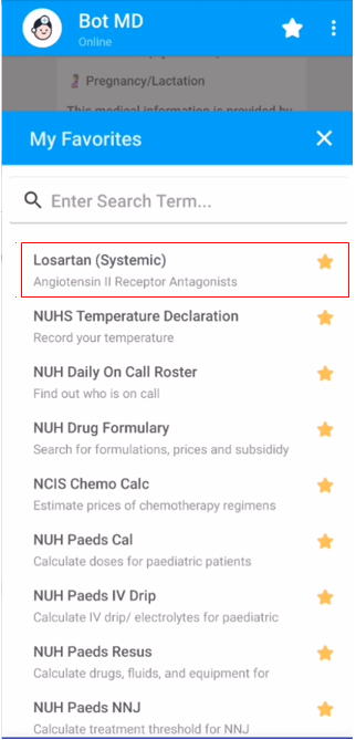 Bot MD allows you to save your favorite drugs to your Favorites List. Click here to learn how.
