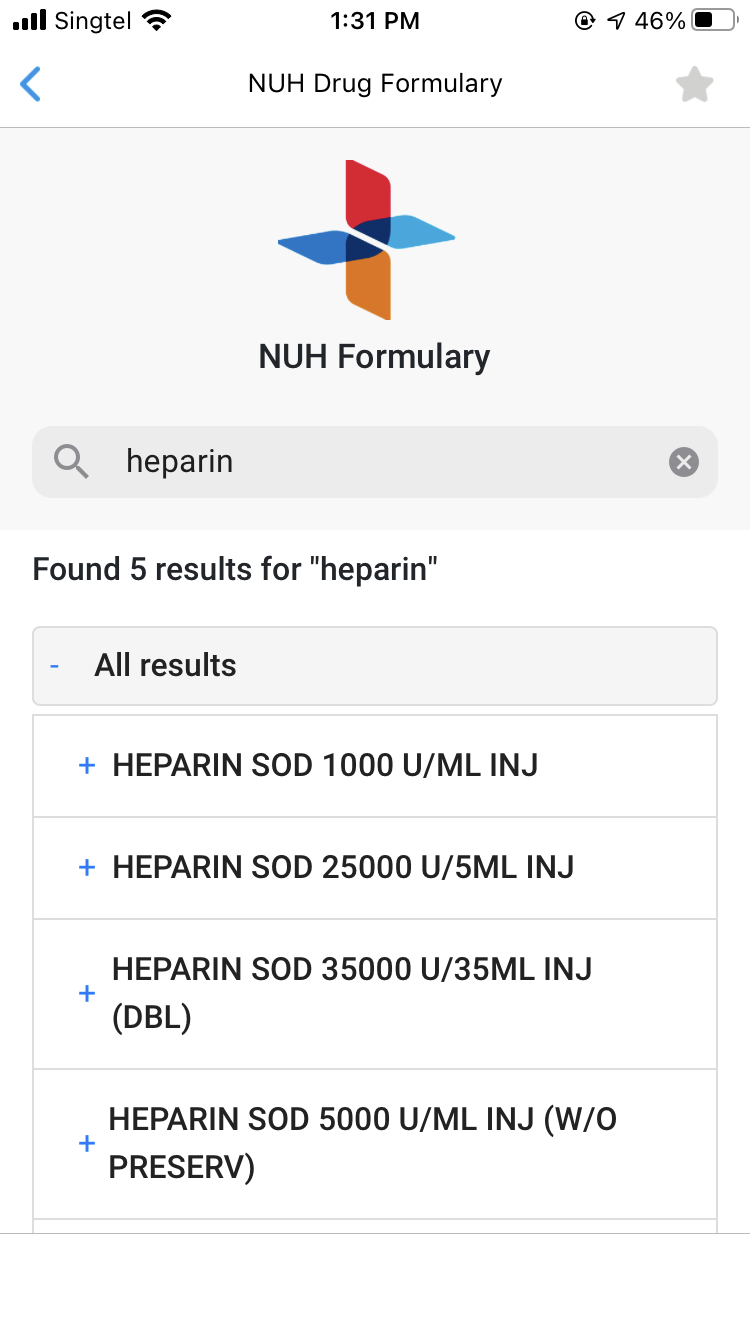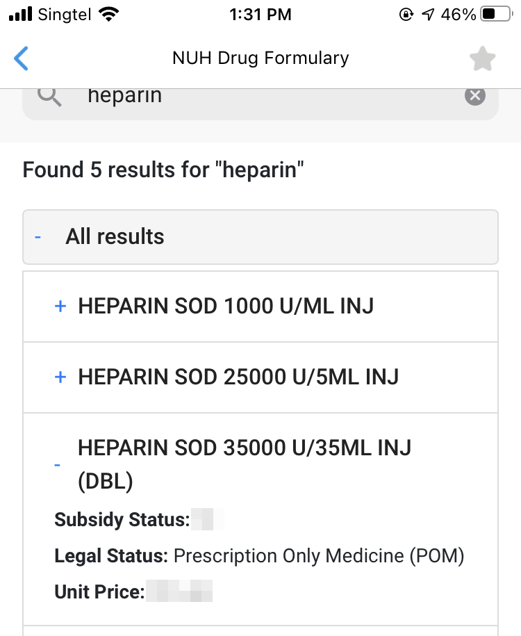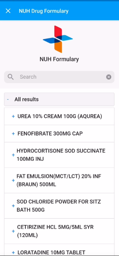 4. Tap on the Expand " +" sign or the name of the formulation to view more information about subsidy status, legal status and drug prices.