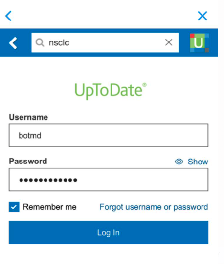 If your institution has an active UpToDate license, you can access UpToDate from Bot MD without having to login. You will need to be connected to your institution WiFi.