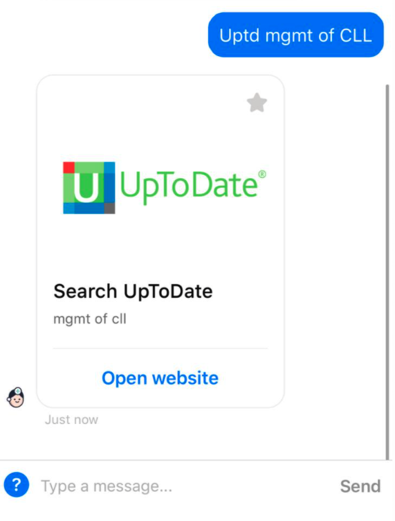 Type "utd" or "uptd" followed by your clinical topic and press send.