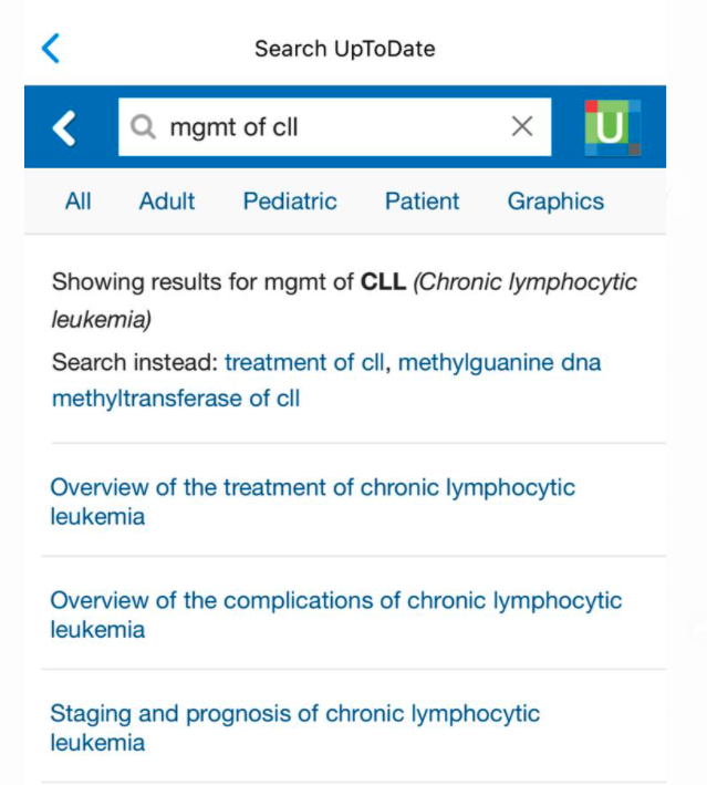 Bot MD allows you to search UpToDate easily from within the application. You can search for any clinical topic and even use medical acronyms and Bot MD will pre-fill the search for you.