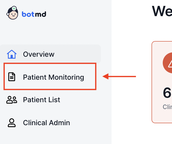1. In the left side of the Clinical Dashboard, Click Patient Monitoring