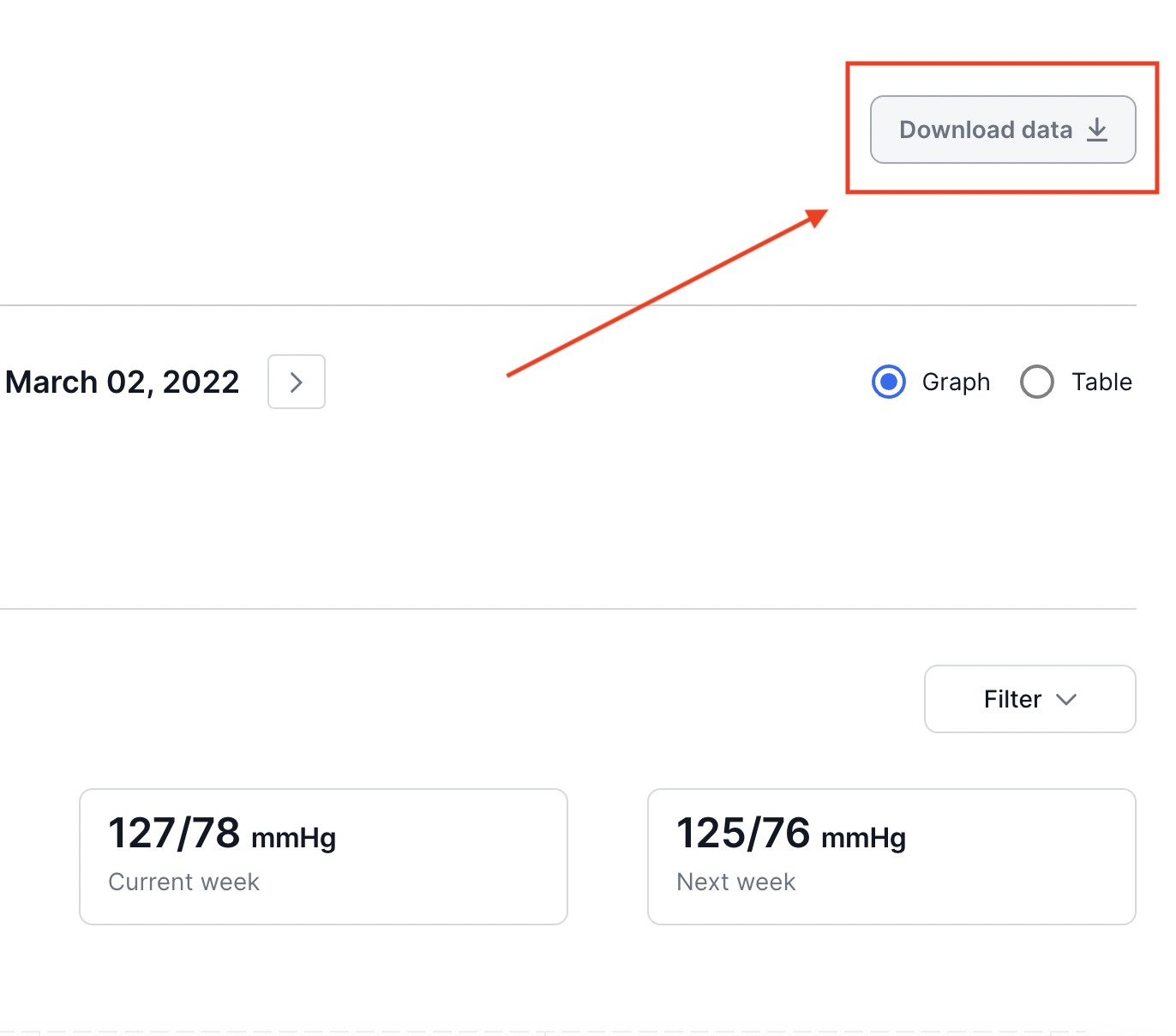 6a. To Download your patient's graphical data as a file, select Export Graphs. The output format will automatically select PDF, then click on Export Data.