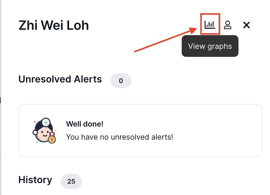 3. Click on your patient's submission and on the flyout, click on the mini graphs icon to view your patient's graphs.