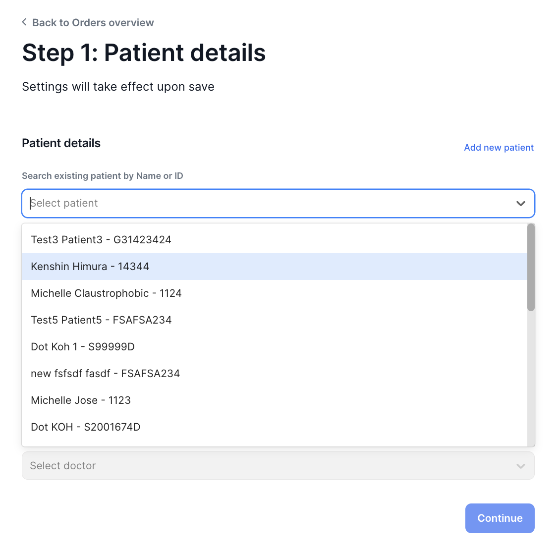 2. Select a Patient from the Drop Down List