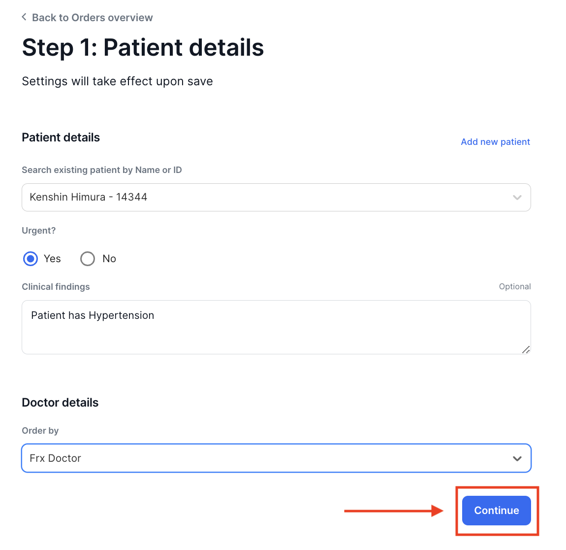 Note: You must be logged in as a Doctor or Clinic Admin in order to create an order