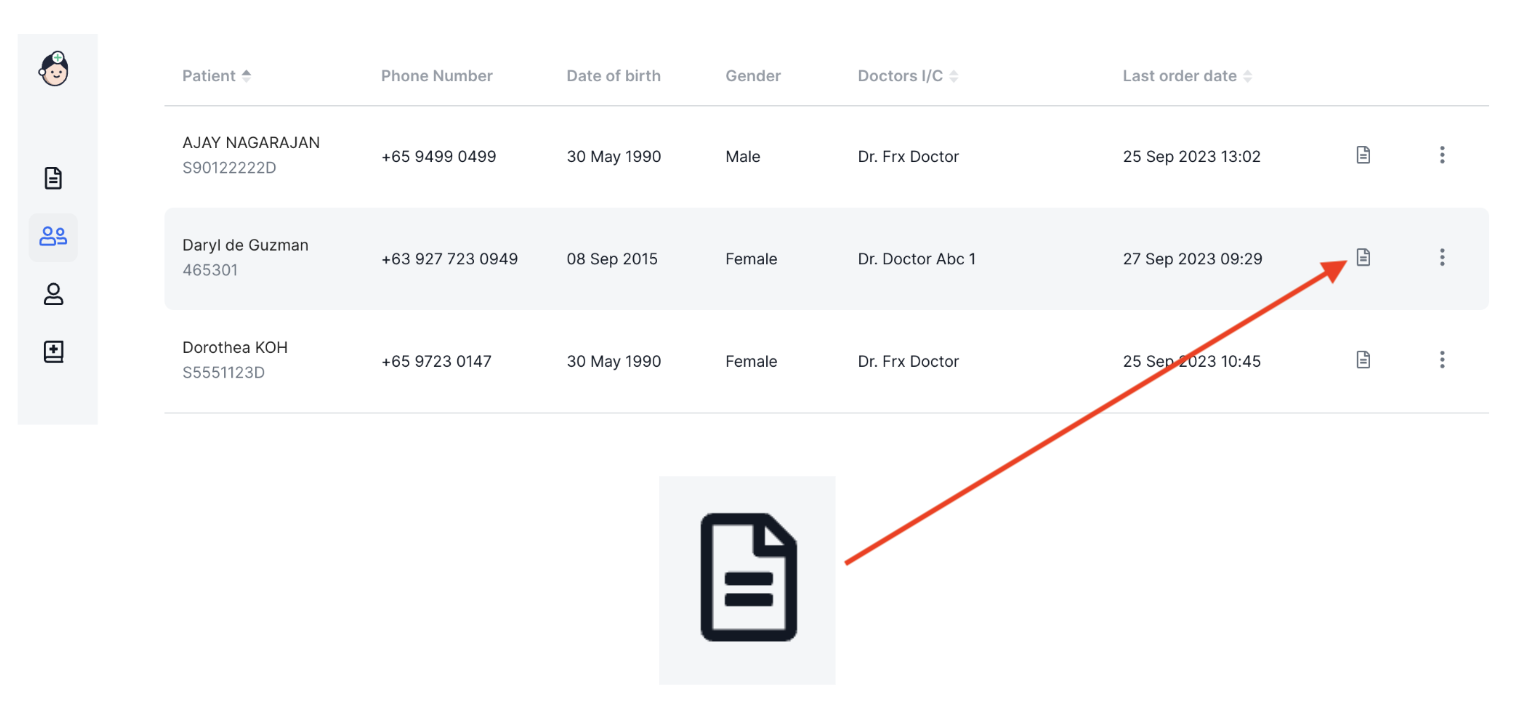 (Note: the Patient, Doctors I/C, and Last order date columns may be sorted or filtered as needed. For more information please see the section on Sorting and Filtering Lists).