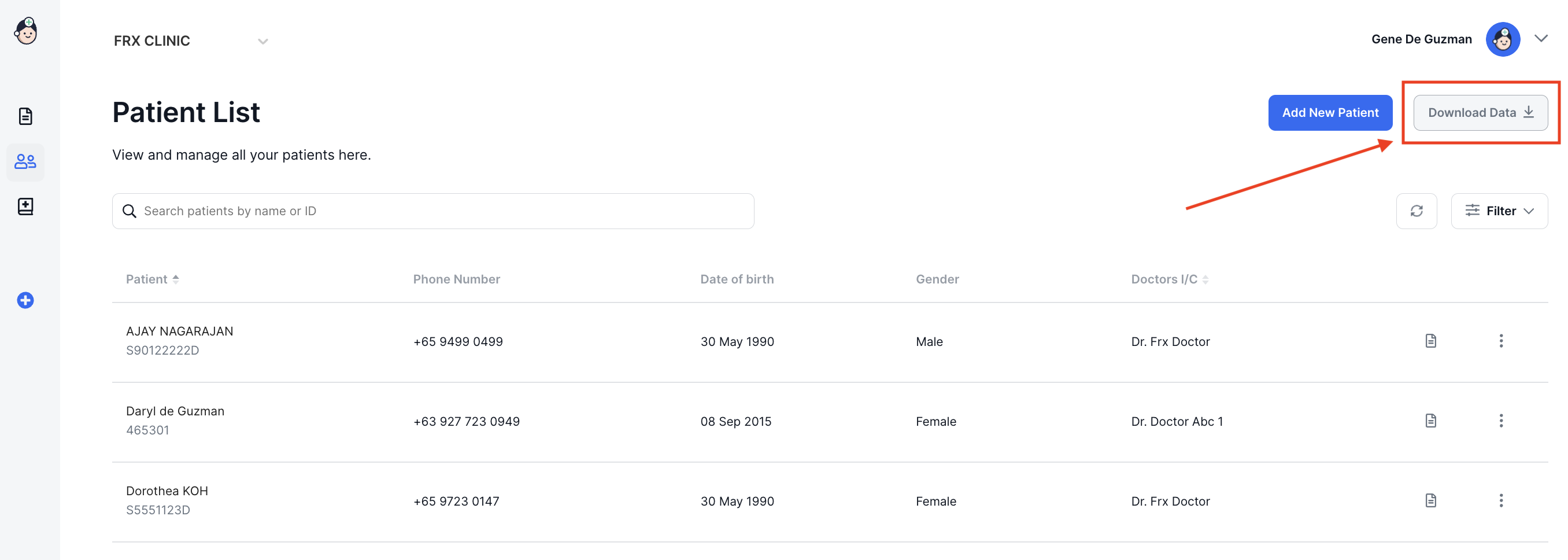 The Bot MD x Parkway dashboard allows you to download your patient data in a quick csv format.
