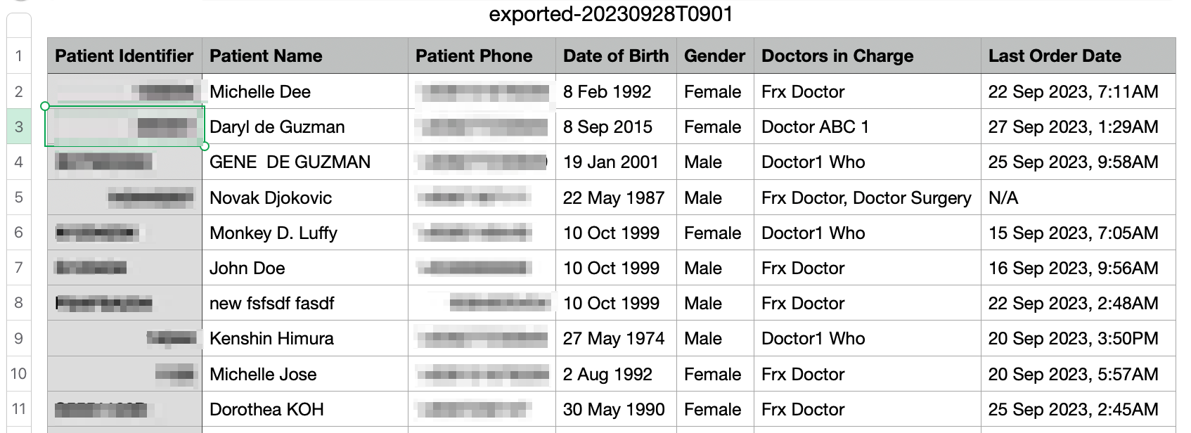 3. Open your downloaded csv file with a spreadsheet editor (e.g. Excel or Numbers). The CSV file contains the following information: