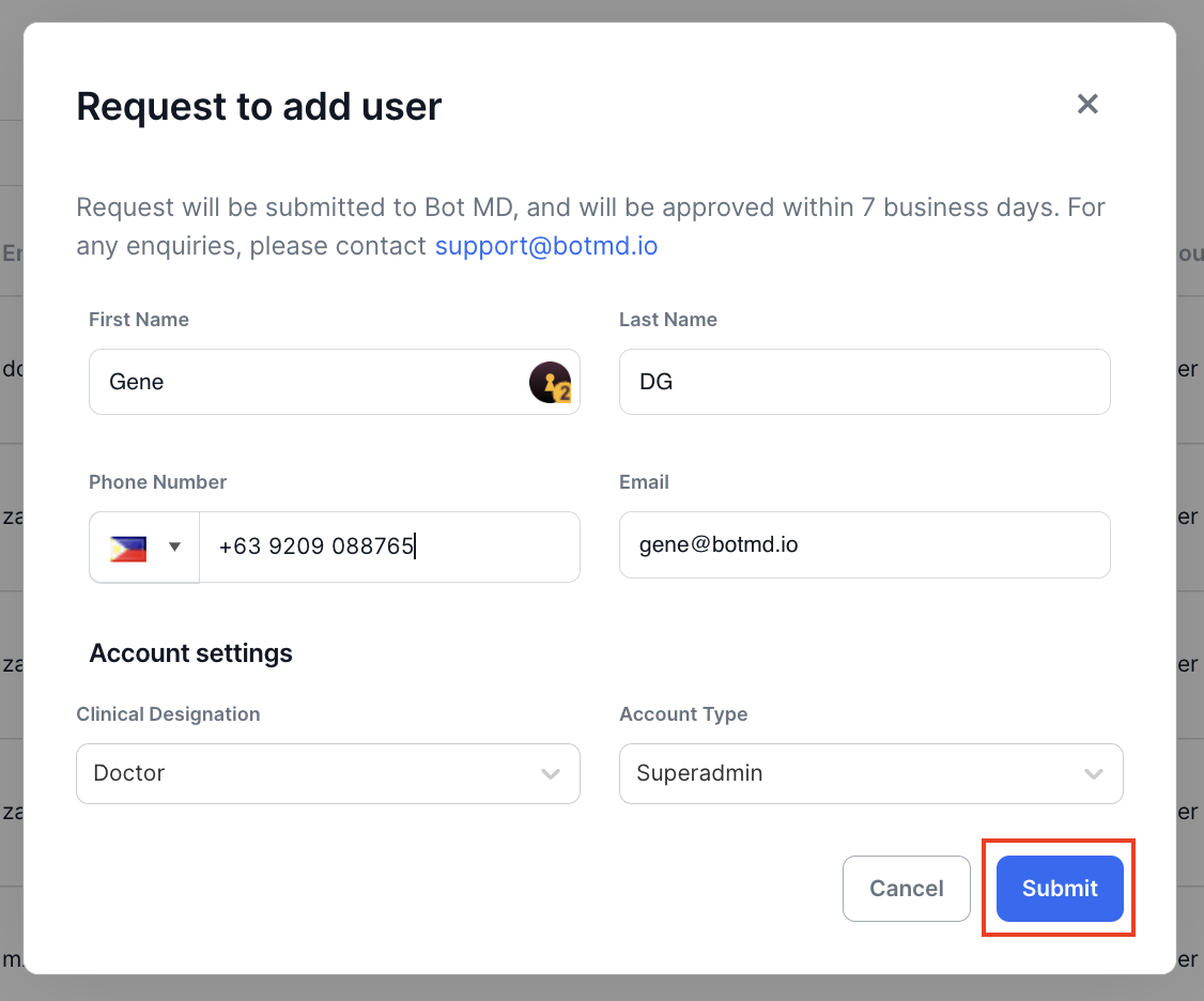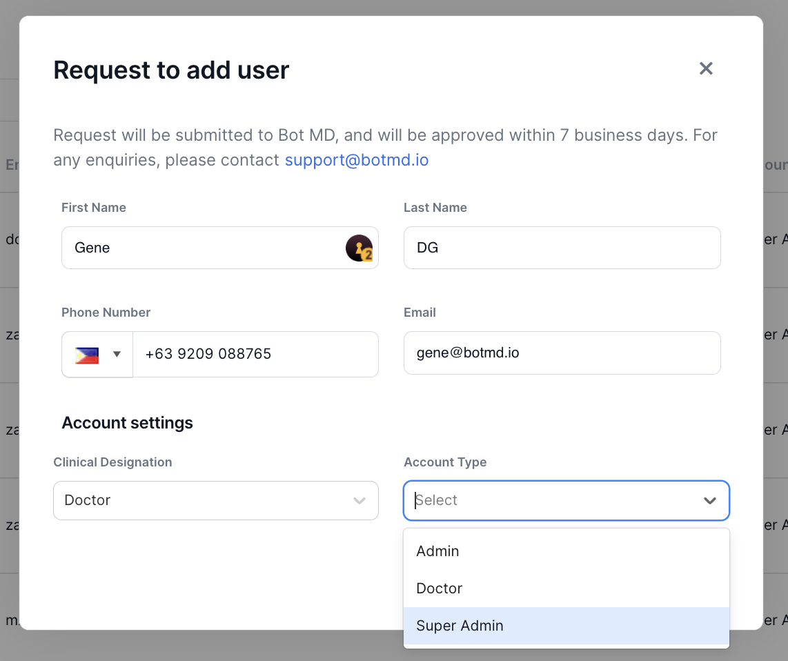 Requesting Additional Clinical Admin Users