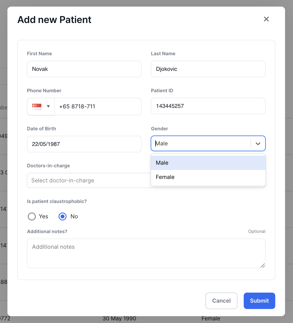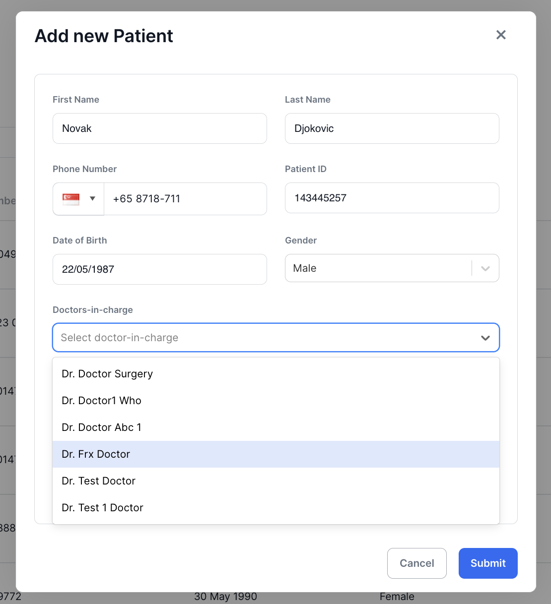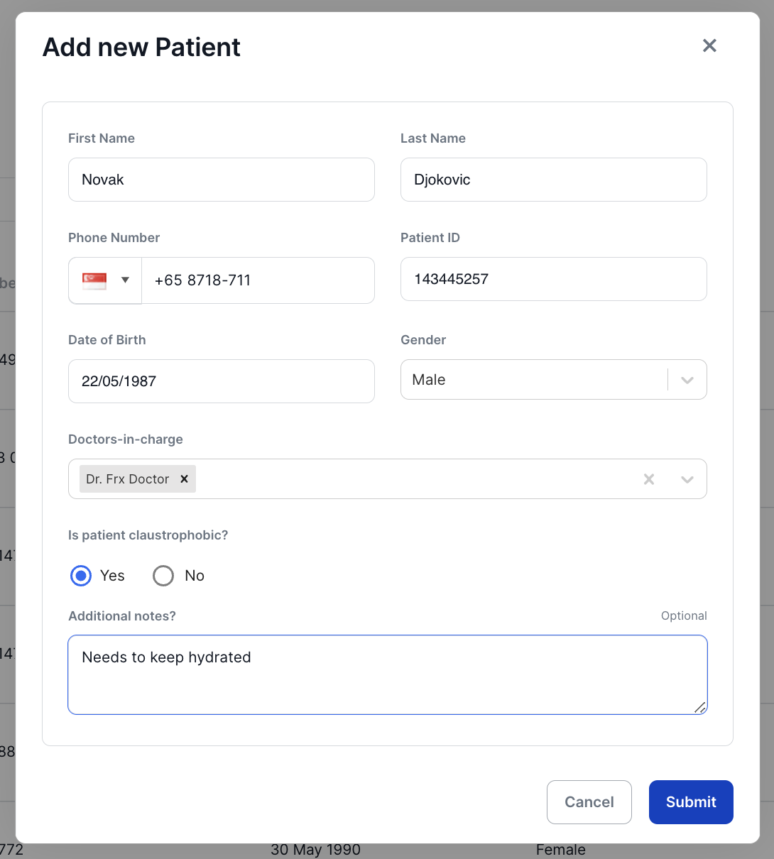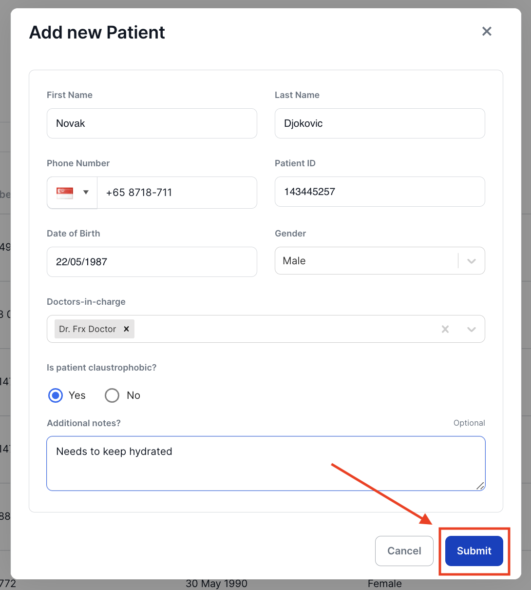 - Finally, click on Submit to save and add to the list of patients.