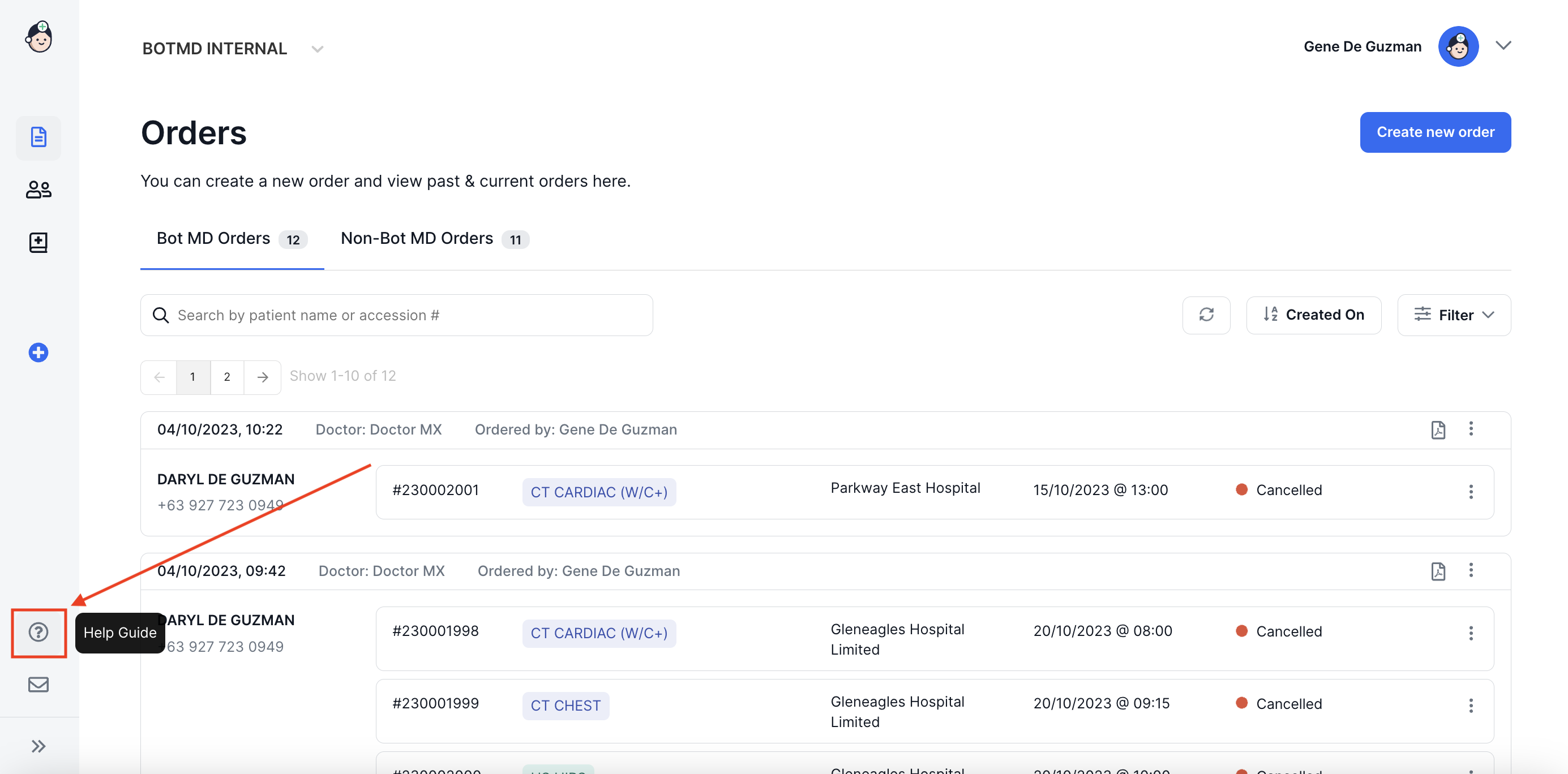 Our Help Guide Can be easily accessed by navigating to help.botmd.com, or if you are logged in, by clicking on the question "?" icon on the left menu.