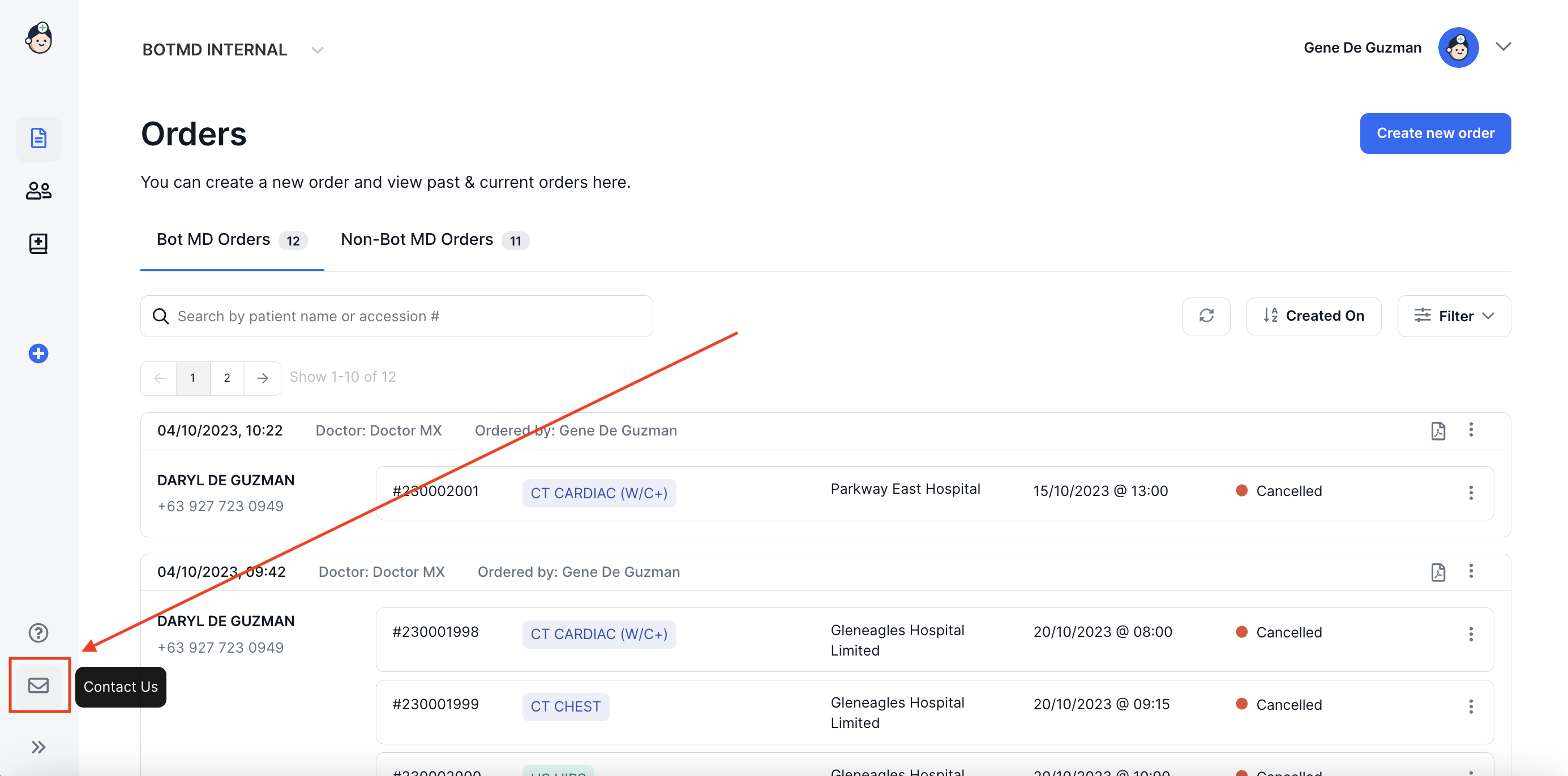 Click on the Contact Us icon on the lower left menu