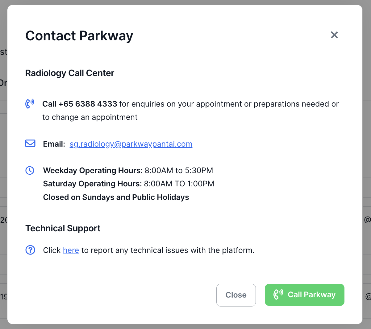 To Contact Parkway for Concerns With Clinics & Scheduling